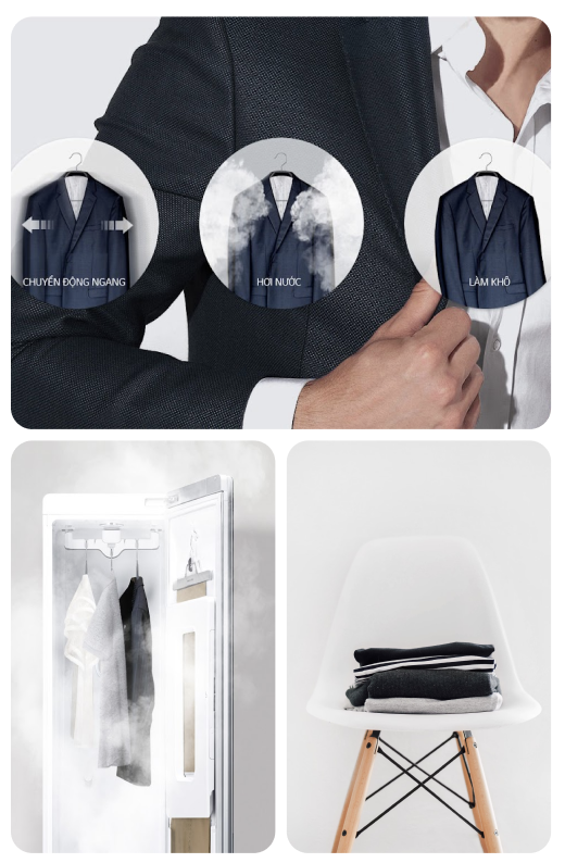 Công nghệ TrueSteam™ cùng với chuyển động ngang của móc treo di chuyển giúp hơi nước thẩm thấu sâu vào quần áo giúp làm giảm các chất gây dị ứng, mùi khó chịu và nếp nhăn. Cơ chế làm khô nhiệt độ thấp giúp làm khô quần áo nhanh hơn so với phơi quần áo thông thường, đồng thời ngăn ngừa sự co rút và hư hỏng do nhiệt.